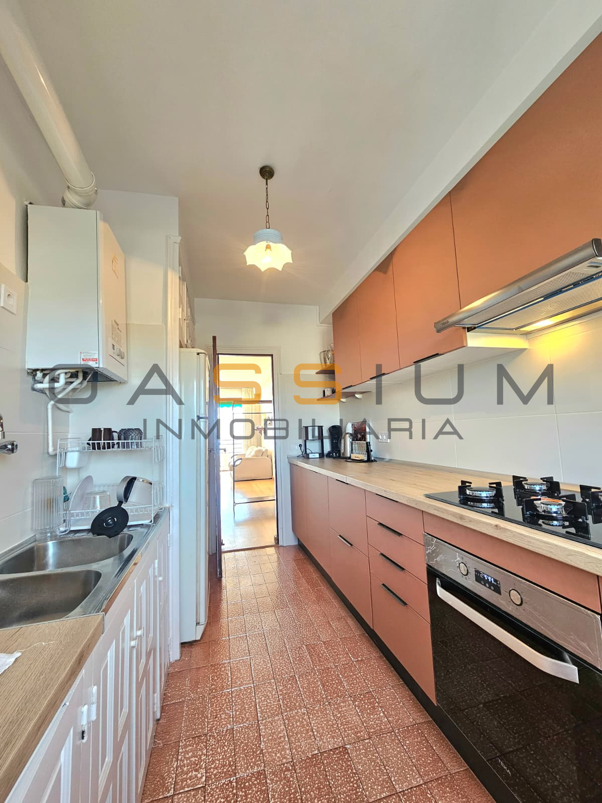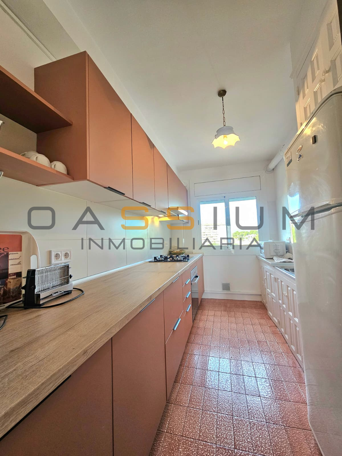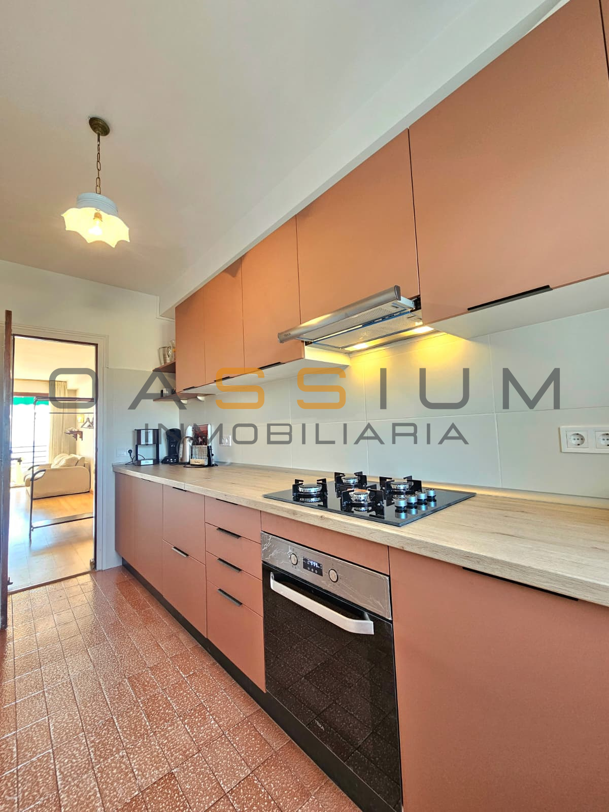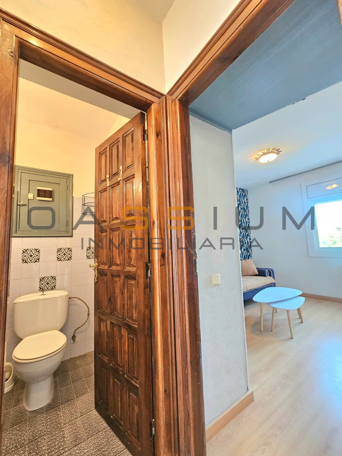 El salón-comedor, amplio y luminoso, conecta directamente con la terraza, creando un espacio perfecto para disfrutar del entorno. La cocina, completamente reformada y equipada, es funcional y cómoda, con un diseño alargado que aprovecha al máximo el espacio.