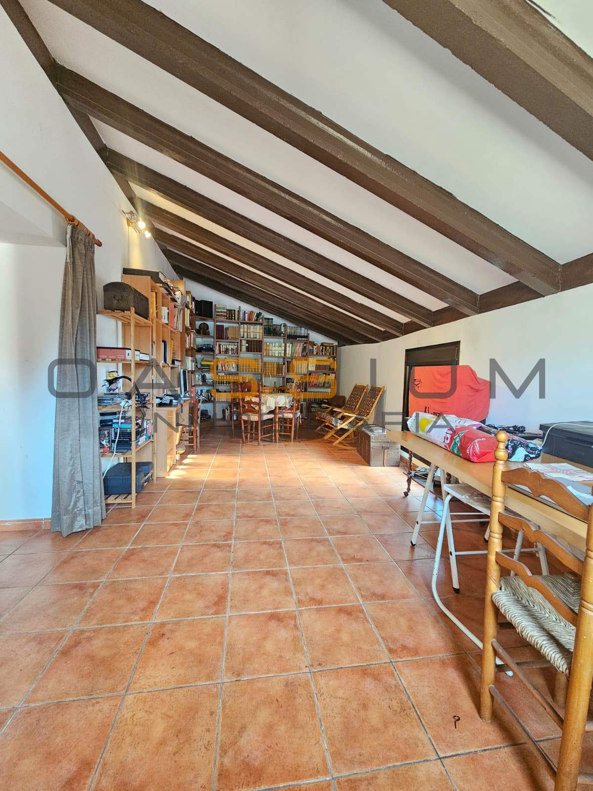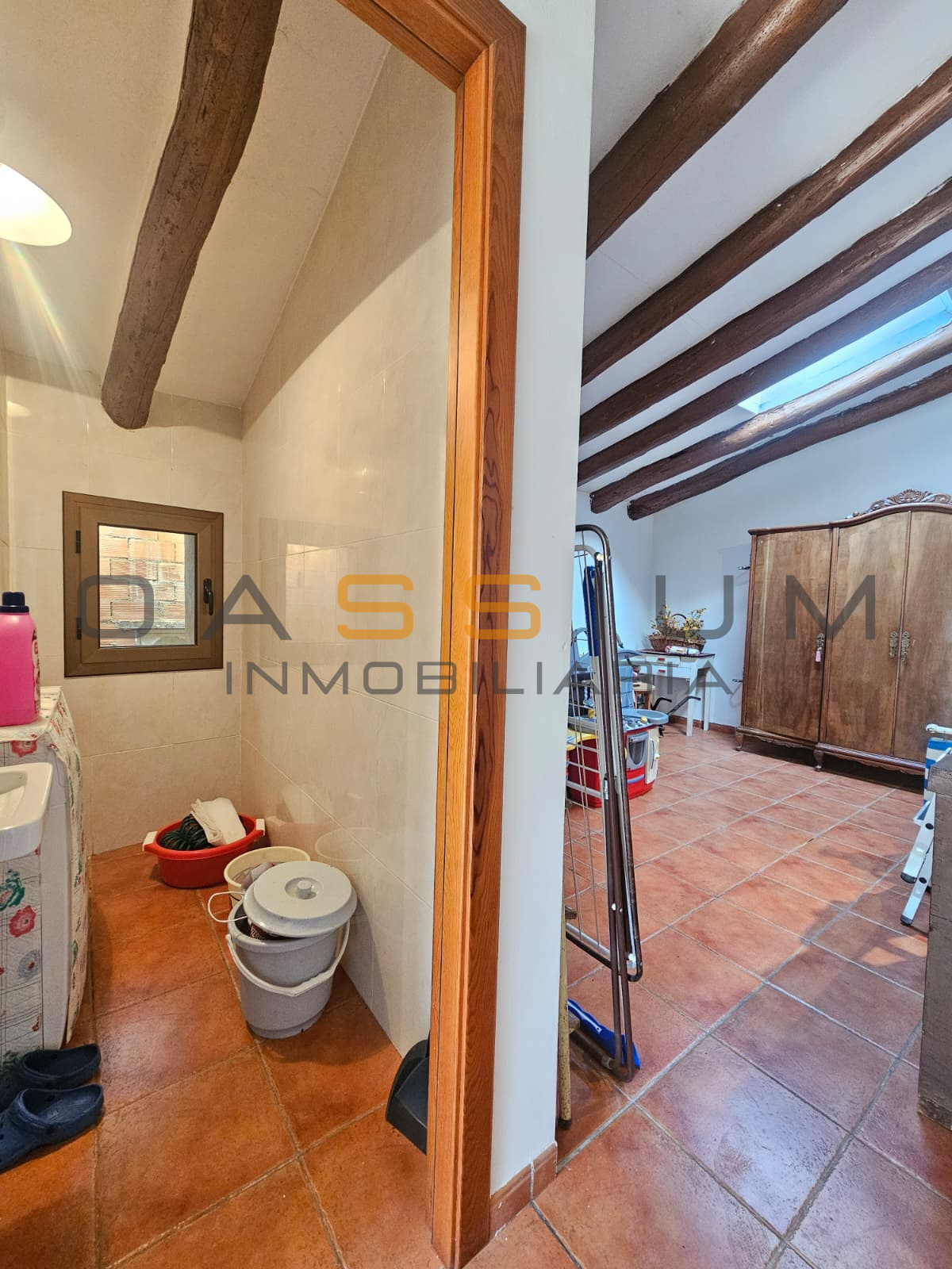 La buhardilla, dividida por una pequeña zona de lavandería, cuenta con dos amplias salas diáfanas listas para convertirlas a tus necesidades y también un acceso a una terraza en forma de C, ideal para disfrutar del sol y el pueblo. La vivienda dispone además de una bodega